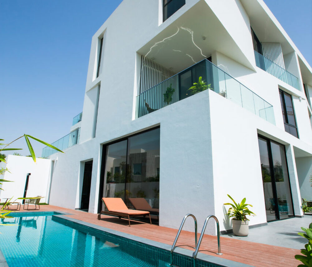 تمنح الفيلات تجربة لا مثيل لها من الهدوء والاسترخاء بفضل هذا المزيج الفريد من الانغماس في الطبيعة والشكل الخارجي الأبيض النقي.