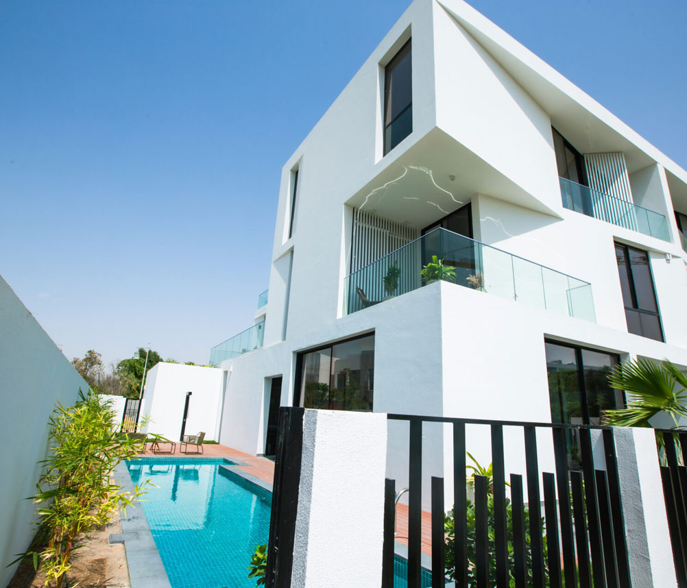 يتكون المشروع من 60 فيلا، تتميز كل منها بتصميم فريد وحديث. تمثل التصميمات الخارجية للفيلات منظرًا رائعًا للاستمتاع بمشاهدتها، وتتميز بجمال معاصر وبسيط يتم تحقيقه من خلال استخدام الطلاء الأبيض النقي والألواح الزجاجية الكبيرة. والنتيجة النهائية هي أجواء هادئة تنعم بالسلام وتتناغم تمامًا مع المساحات الخضراء المحيطة بالشجيرات والأشجار، ما يسمح للسكان والزوار بالاستمتاع والانغماس الكامل في الطبيعة.